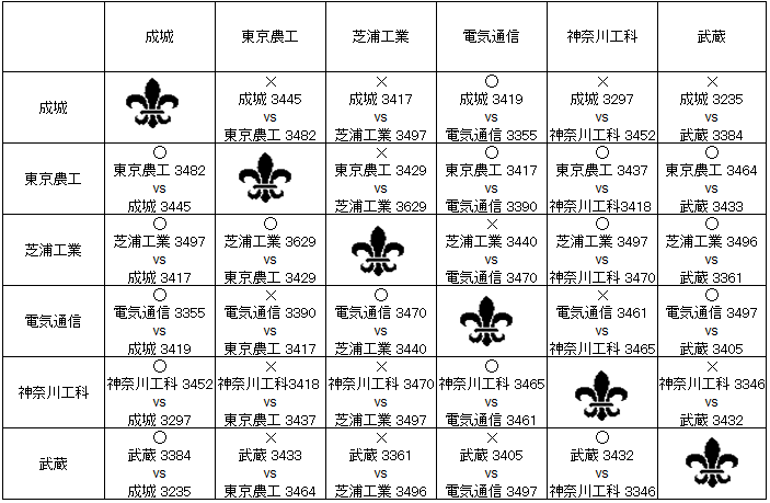 [2011/06/06] 2011年リーグ星取表(男子) (No.58)