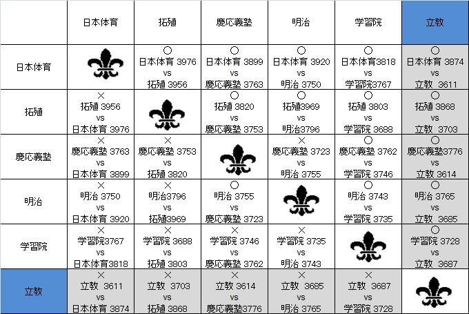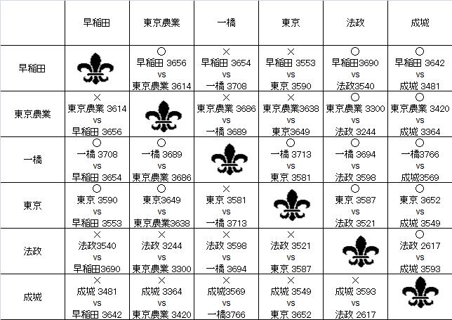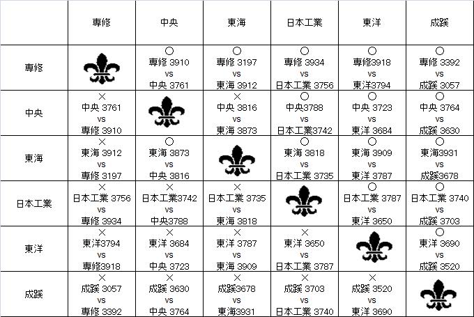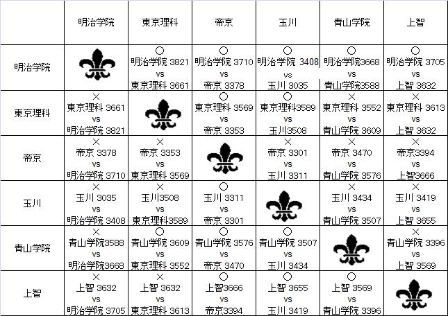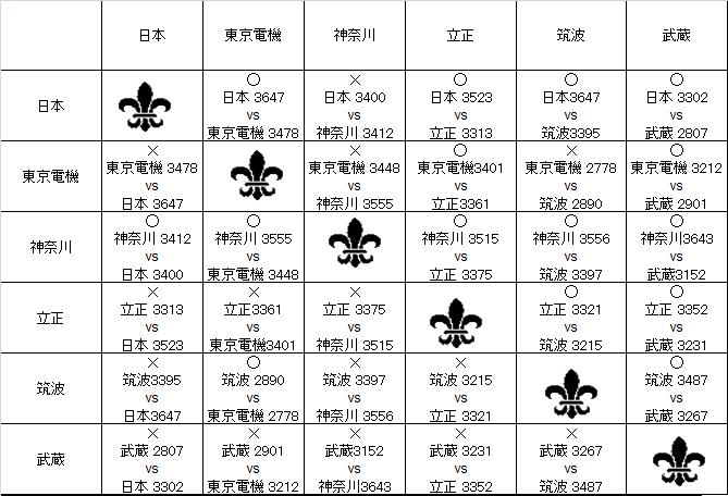 2011年リーグ星取表(男子)