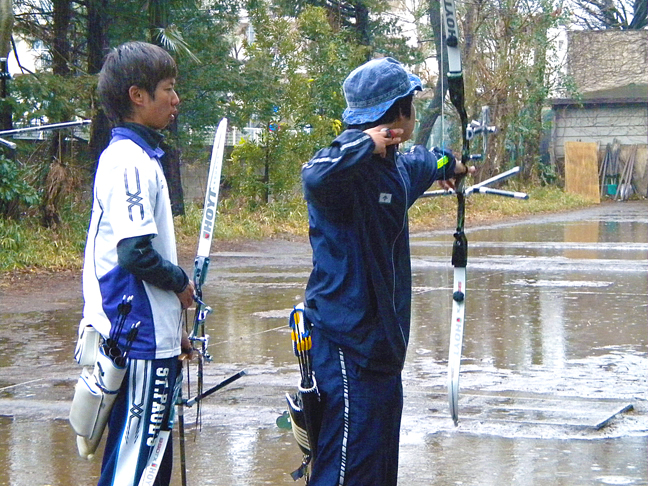 写真3:気合の1射を放つ小木曽(左)と成長を見せる小村(右)