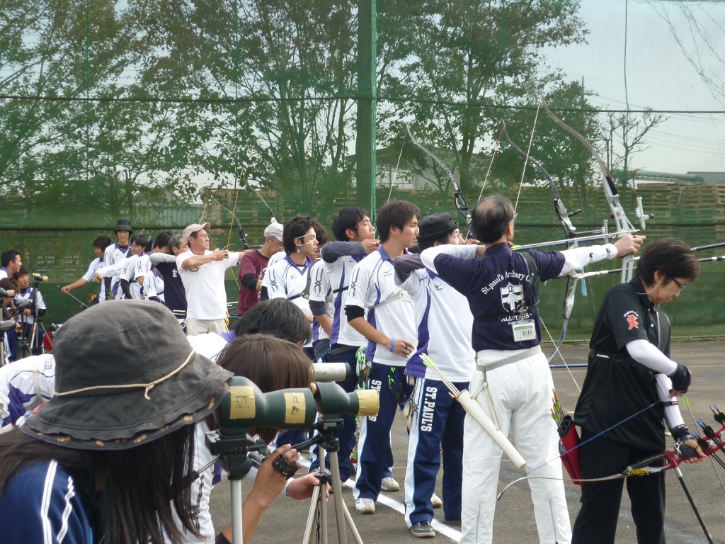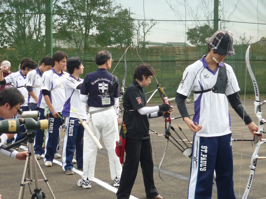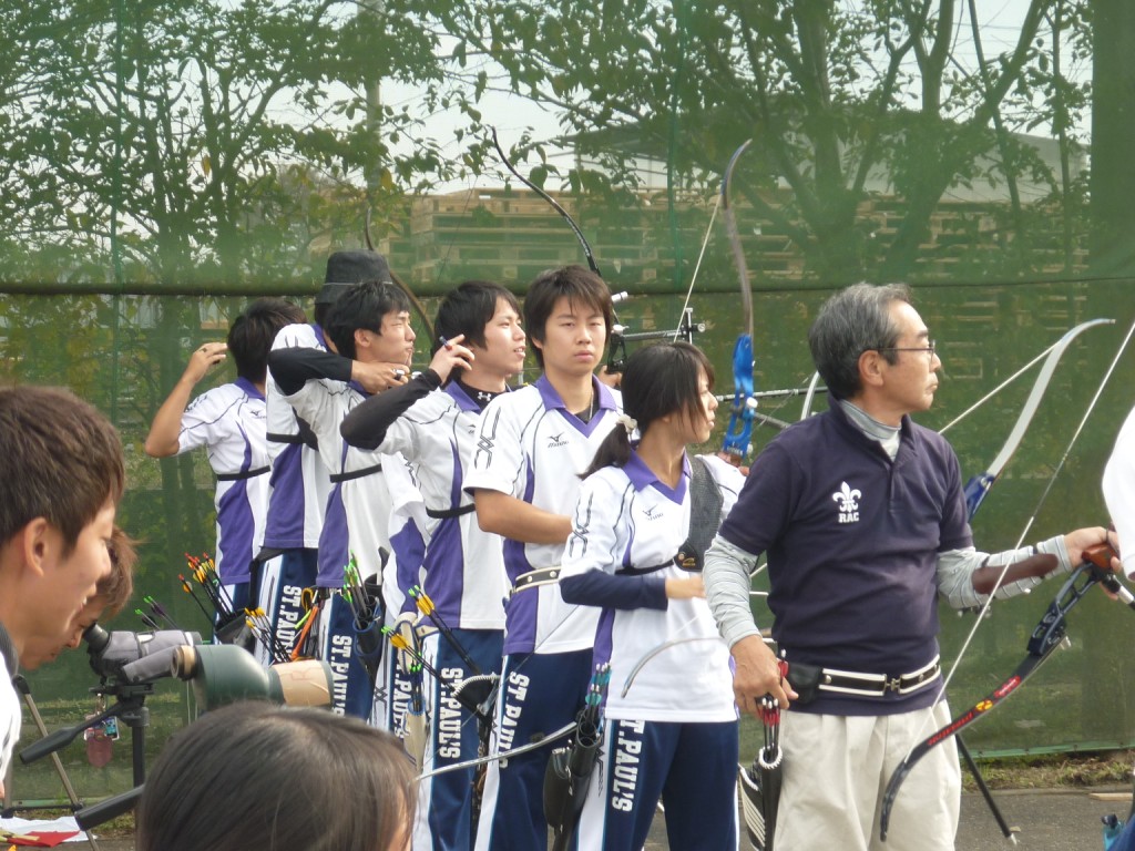 実施:2011年11月13日 場所:立教大学レンジ 天候:晴れ 来援者:大野部長先生、浮貝会長(8期)、塩川副会長(8期)、神津副会長(9期)、小松先輩(5期)、加藤先輩(38期)、赤尾先輩(45期)、横川先輩(48期)、山村先輩(49期)、市川先輩(49期) ・男子 男子Six:3596 1~3年男子ave:529.3 OB+4年男子ave:506.3 名前(学年or期) 50m 30m total ------------------------ 窪田 (2) 306 325 631 小木曽 (4) 305 323 628 高橋 (3) 292 329 621 渡邉(雄) (3) 299 317 616 前田 (3) 282 321 603 福島先輩 (43期) 280 319 599 川島 (4) 279 316 595 榎本先輩 (35期) 274 312 586 依田先輩 (49期) 264 317 581 大湯監督 (8期) 263 315 578 小野 (2) 257 317 574 小島先輩 (16期) 264 308 572 横田 (2) 250 301 551 大畑先輩 (38期) 241 306 547 梅田 (2) 240 307 547 石井 (1) 254 287 541 松村(拓) (2) 234 303 537 時延 (2) 246 284 530 小村 (2) 258 265 523 西澤 (2) 244 278 522 水井 (4) 234 286 520 尾暮 (2) 215 304 519 宮田 (1) 217 293 510 大河原 (3) 226 282 508 渡邊(将) (1) 207 300 507 飯窪 (3) 222 283 505 横森 (4) 189 281 470 玉澤 (2) 181 262 443 海老原先輩 (2期) 187 246 433 松村先輩 (8期) 175 249 424 一瀬 (4) 173 242 415 渡辺(新) (2) 162 249 411 武藤コーチ (45期) 144 265 409 澤邊 (1) 173 214 387 松本 (4) 131 247 378 小原 (4) 128 238 366 ・女子 女子Four:2354 1~3年女子ave:564.6 OG+4年女子ave:487.7 名前(学年or期) 50m 30m total ------------------------ 小山 (3) 289 327 616 島村 (4) 296 316 612 作田 (3) 277 330 607 太田 (2) 258 312 570 斎藤 (2) 255 306 561 松村(智) (2) 232 320 552 山崎 (3) 226 298 524 寺木 (1) 243 279 522 竹内(4)+吉田(4) 189 245 434 小林芳枝先輩(9期) 150 267 417 ************************* 本日は年1回のセントポールズカップの開催日となりました。 空は晴れ渡り、また気温も暖かく、風も吹いていなかったため絶好のアーチェリー日和と言えるコンディションの中、セントポールズカップを行うことができました。 本日の試合には選手として海老原先輩や小林先輩をはじめとした、多くの代の方々に出場していただくことができ、また応援には浮貝会長や神津副会長など、様々なOB・OGの方に加え、大野部長先生にもいらっしゃっていただくことができました。 本日の形式は男女それぞれ1年から3年、4年とOBの方々のアベレージ対決となりました。 また男子は上位5位、女子は上位6位に賞品が授与され、そして男女混合で下から2位と、依田先輩の点数に最も近い人、飯窪の点数に最も近い人にそれぞれ特別賞が授与されました。 まず50mでは、1エンド目に大湯監督、大畑先輩が高得点を出され、良いスタートを切られました。 現役では出だしで失敗した者もおりましたが、徐々に調子を上げていきました。小島先輩、福島先輩は赤字を立て続けに出され、現役に勝る迫力で射たれ続けました。 続く30mでは、OB・OGの方々は50mでの良い勢いをそのままに、自分のペースに忠実に射たれました。 OB・OGの方に負けじと4年の川島が序盤に赤字を出し、勢いをつけていきました。 そして榎本先輩が安定した射を行われ、点数を出し続けられました。 30m中盤から、試合に参加した全員が集中力と体力の低下からか、ミスが起きやすくなっていました。 その中で終盤に福島先輩が高得点を出し、OBの実力を存分に発揮されました。 今年度は設備が新しくなり、より快適な練習環境となった射場で試合を行いましたが、終始良い雰囲気で進んでいきました。現役は普段は接する機会が少ないOB・OGの方と同じ時間を共有させていただいたことで、交流を深められ、良い刺激を受けることができたと思います。 そしてこのセントポールズカップによって部員各員がOB・OGの方々にご支援いただけている有り難さを再認識し、それに報いるためにも練習して高い点数を出さなければならないという意志が強くなったと感じております。 最終的にリーグ戦を見据え、これからまだまだ試合を行っていきますが、部員一同、この経験を糧に頑張って参ります。 今後の試合予定ですが、11月27日に男子成蹊大学戦を成蹊大学レンジにて行います。 選手集合は11時となっております。 もしお時間宜しければ、応援に来ていただけたら幸いです。 最後になりますが、今年度のセントポールズカップにはOB・OG会をはじめとした多くの方からの、様々なご支援をいただくことで無事に開催し、楽しい部内試合とすることができました。 この場をお借りして、感謝の意を表したいと思います。 誠にありがとうございました。 今後ともご指導のほど、宜しくお願い致します。 立教大学体育会洋弓部第51期主将 大河原一平 |