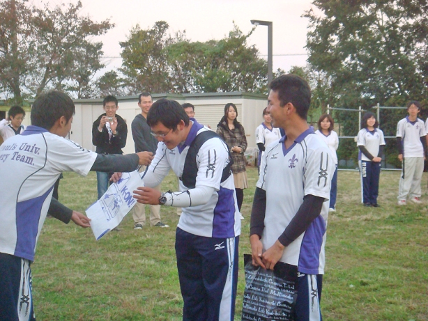 <個人>4年小木曽 敢闘賞 3年小山 奨励賞 体育会OB・OGクラブ表彰 以上の賞を頂きました。 これもOB・OGの方々が、日頃から現役の活動を支えて下さっているからです。 本当にありがとうございます。 集合写真 小木曽 小山(2枚目は右) |